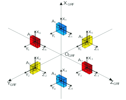 GOCEによる地球重力場の測定には, 高高度のGNSS (Global Navigation Satellite System) 衛星から低軌道のLEO(Low Earth Orbiter)衛星の軌道追跡を行うH-L SST (High-Low Satellite to Satellite Tracking)と重力偏差計(Gradiometer)を組み合わせた方法が用いられている. GOCEの重力偏差計は直交する3軸に加速度計を2組ずつ6台配置したもので(図1), これら18個の加速度計から得られる測定値を組み合わせることにより, 重力ポテンシャルV の6個の2階微分成分, Vxx , Vyy , Vzz , Vxy , Vxz , Vyz のすべてが計測される. 地球の重力場データは, H-L SSTにより計測される重力場の長波長成分に, 重力偏差計で測定される重力場の短波長成分を加えることにより得られる.