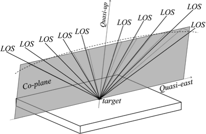 図4 入射方向(LOS: line-of-sight)と共通面に関する模式図.
