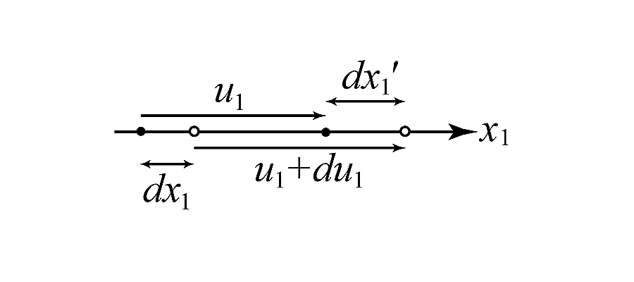 変形前, $dx_{1}$ 離れた2点間の距離が, 変形後は$dx_{1}'$ になったとすると